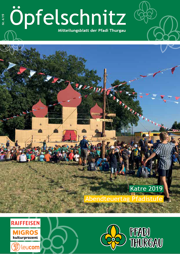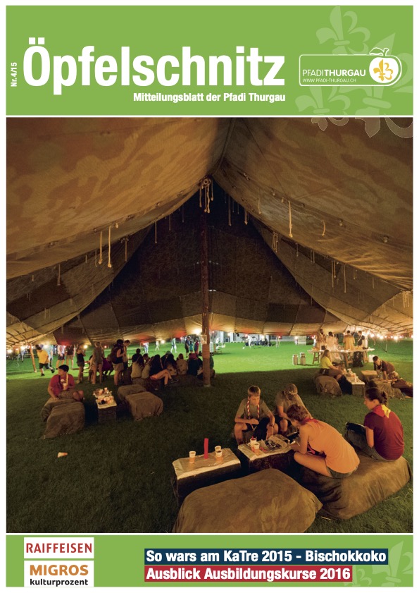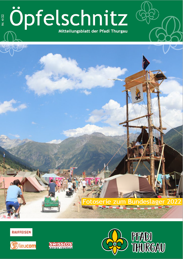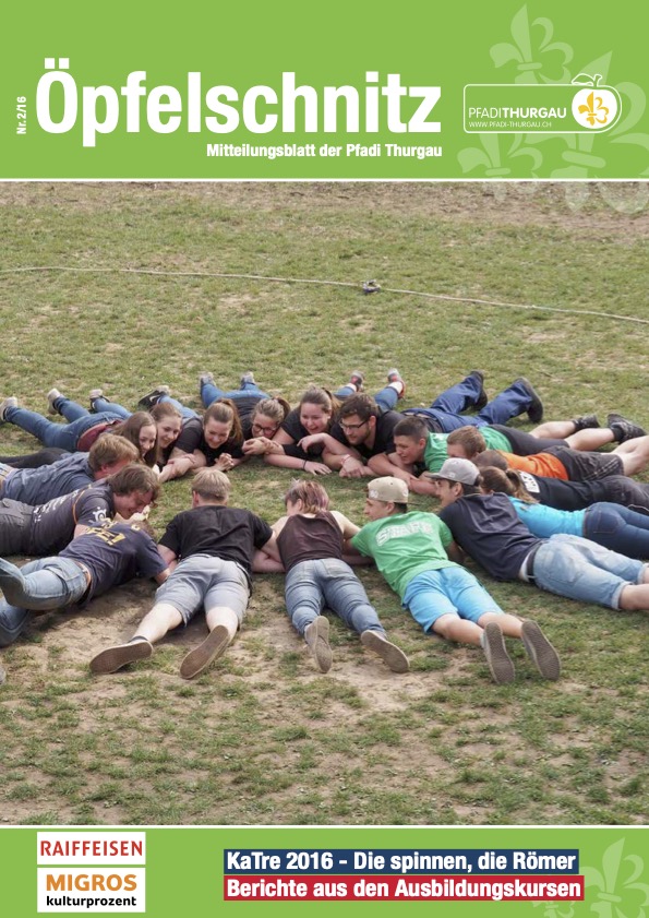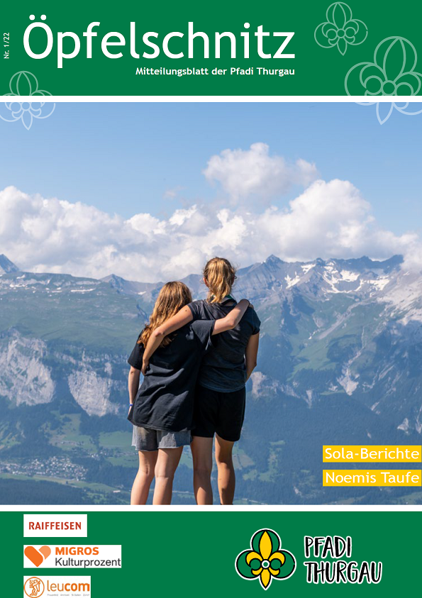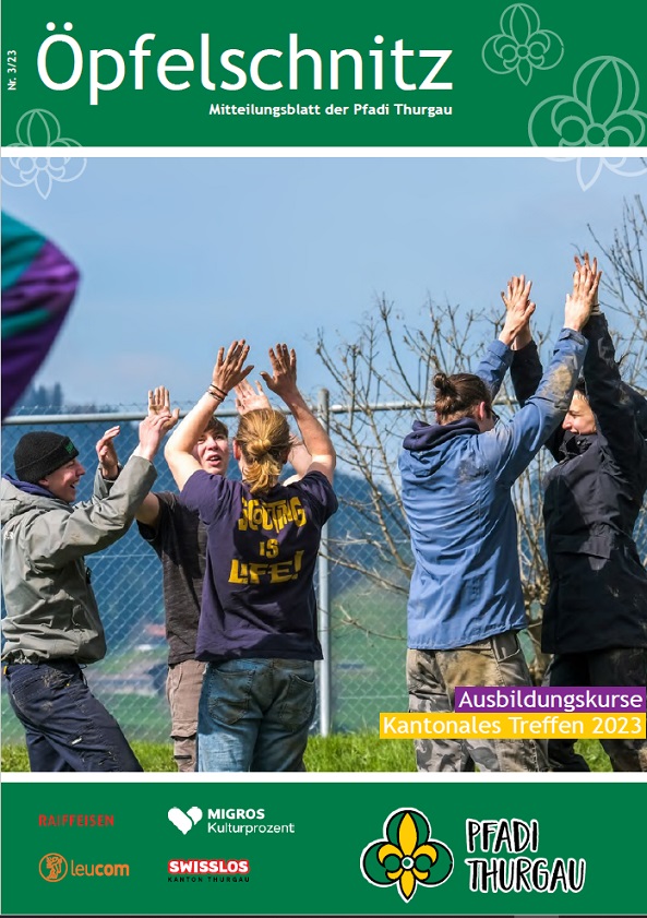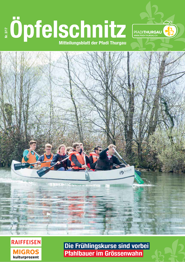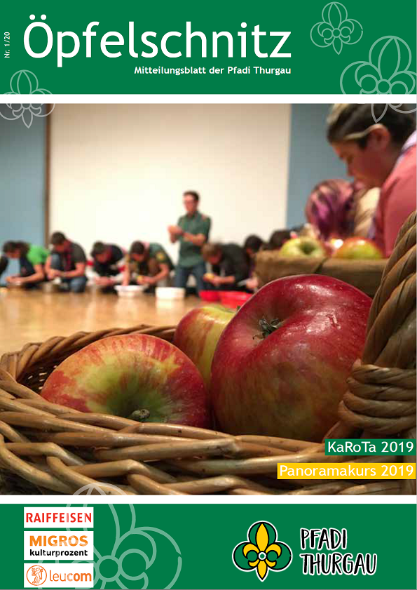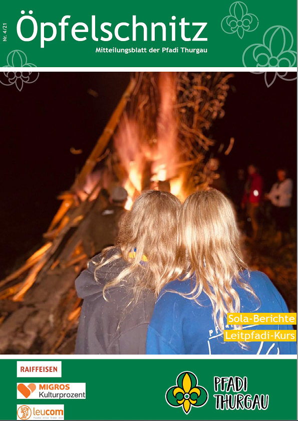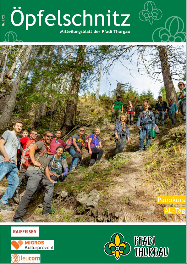 Berichte von kantonalen Anlässen, erlebnis- und lehrreichen Ausbildungskursen, Impressionen vom Pfadi-Alltag der Thurgauer Abteilungen und vieles mehr findest du im Öpfelschnitz – der offiziellen Mitgliederzeitschrift der Pfadi Thurgau. 4-mal im Jahr informieren wir dich über Geschehnisse in der Thurgauer Pfadi.