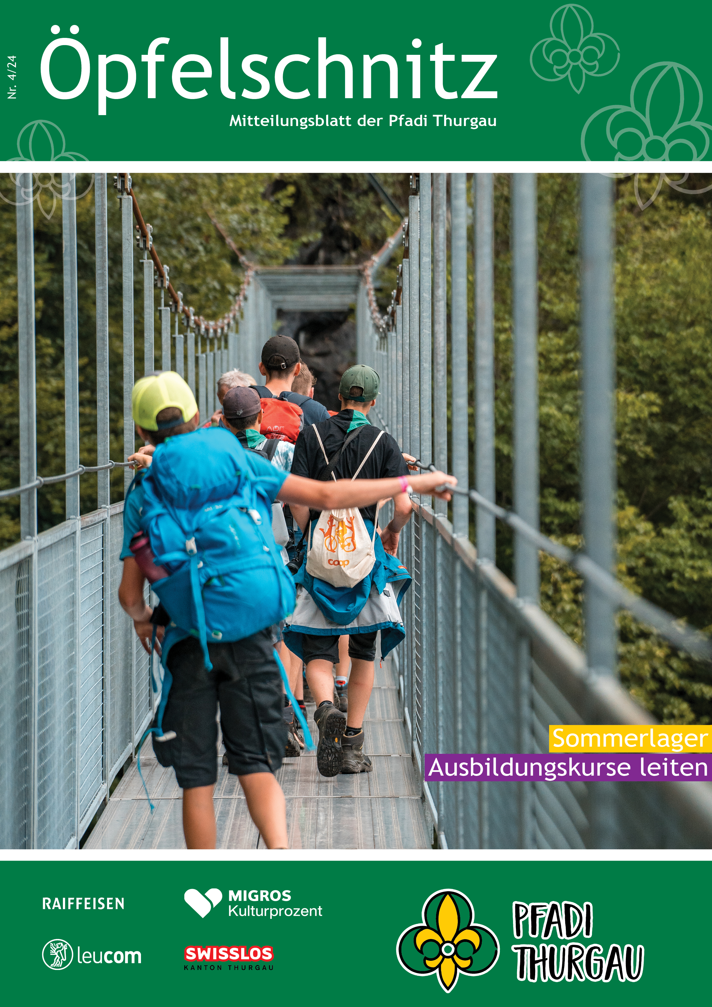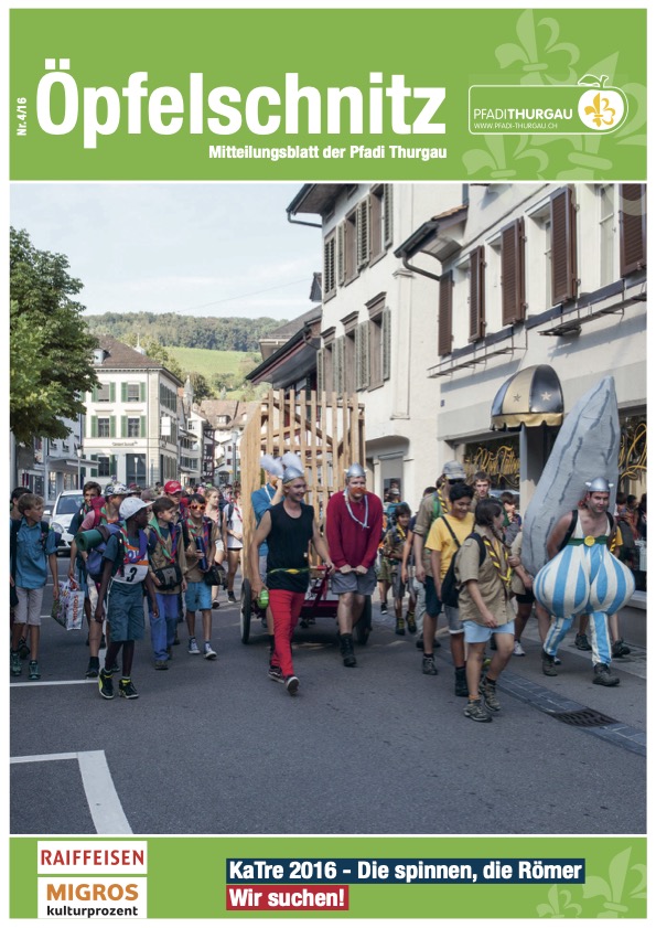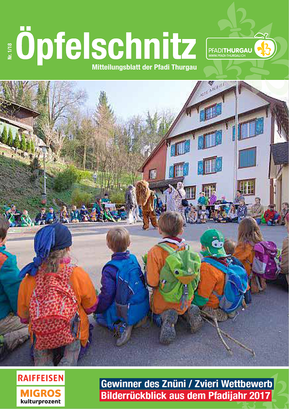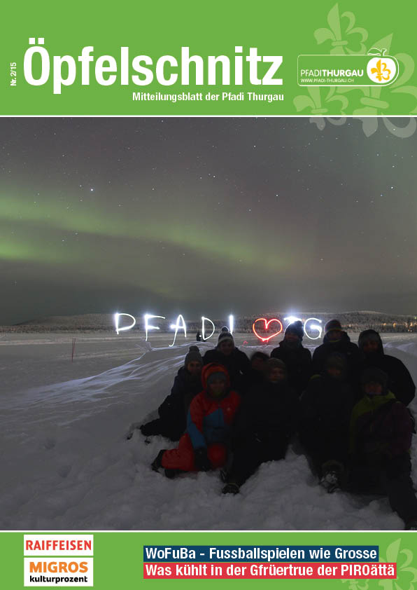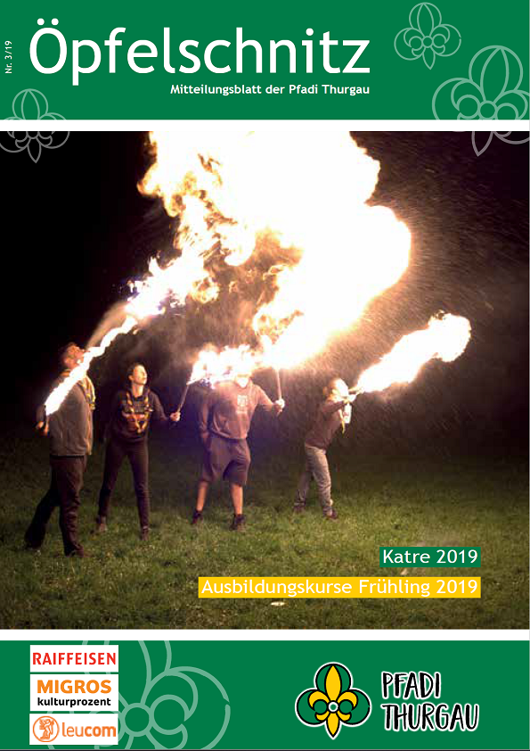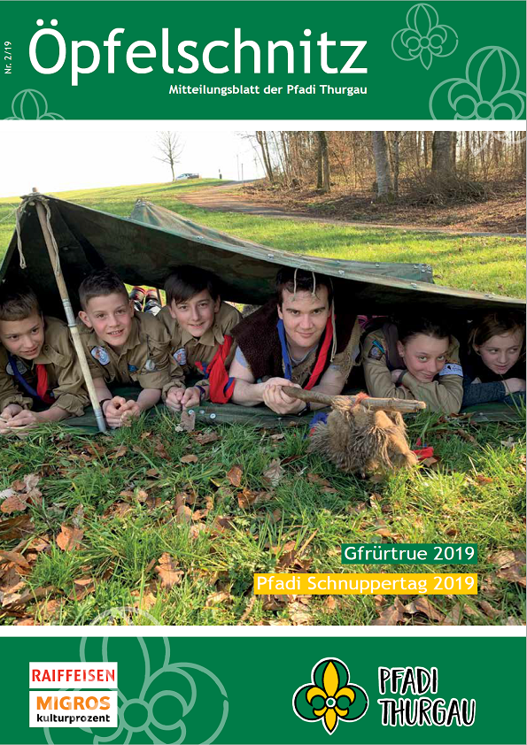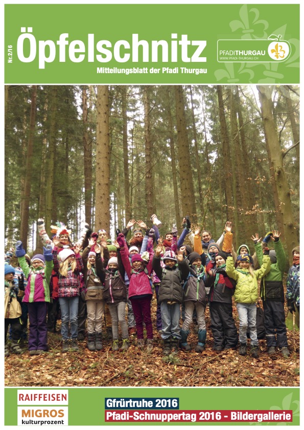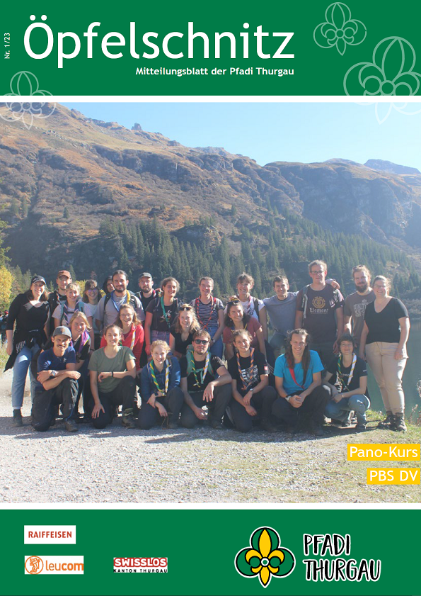 Berichte von kantonalen Anlässen, erlebnis- und lehrreichen Ausbildungskursen, Impressionen vom Pfadi-Alltag der Thurgauer Abteilungen und vieles mehr findest du im Öpfelschnitz – der offiziellen Mitgliederzeitschrift der Pfadi Thurgau. 4-mal im Jahr informieren wir dich über Geschehnisse in der Thurgauer Pfadi.